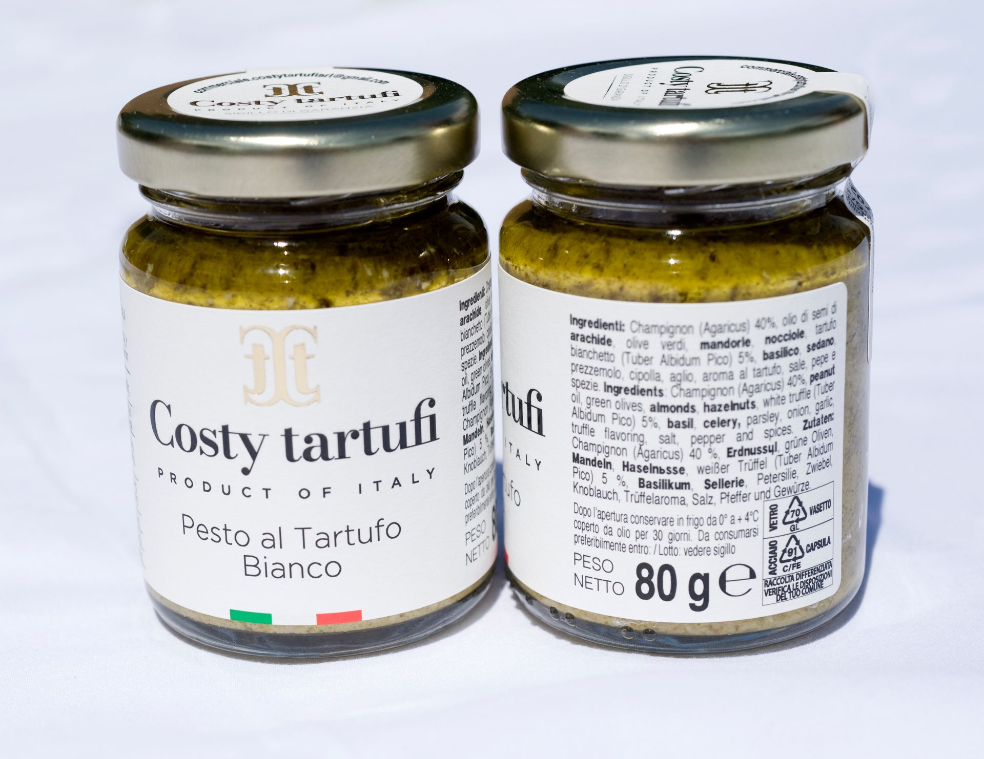 Il pesto al tartufo bianco è una prelibatezza arricchita dalla presenza del tartufo bianco in perfetta armonia con il basilico, mandorle e nocciole.