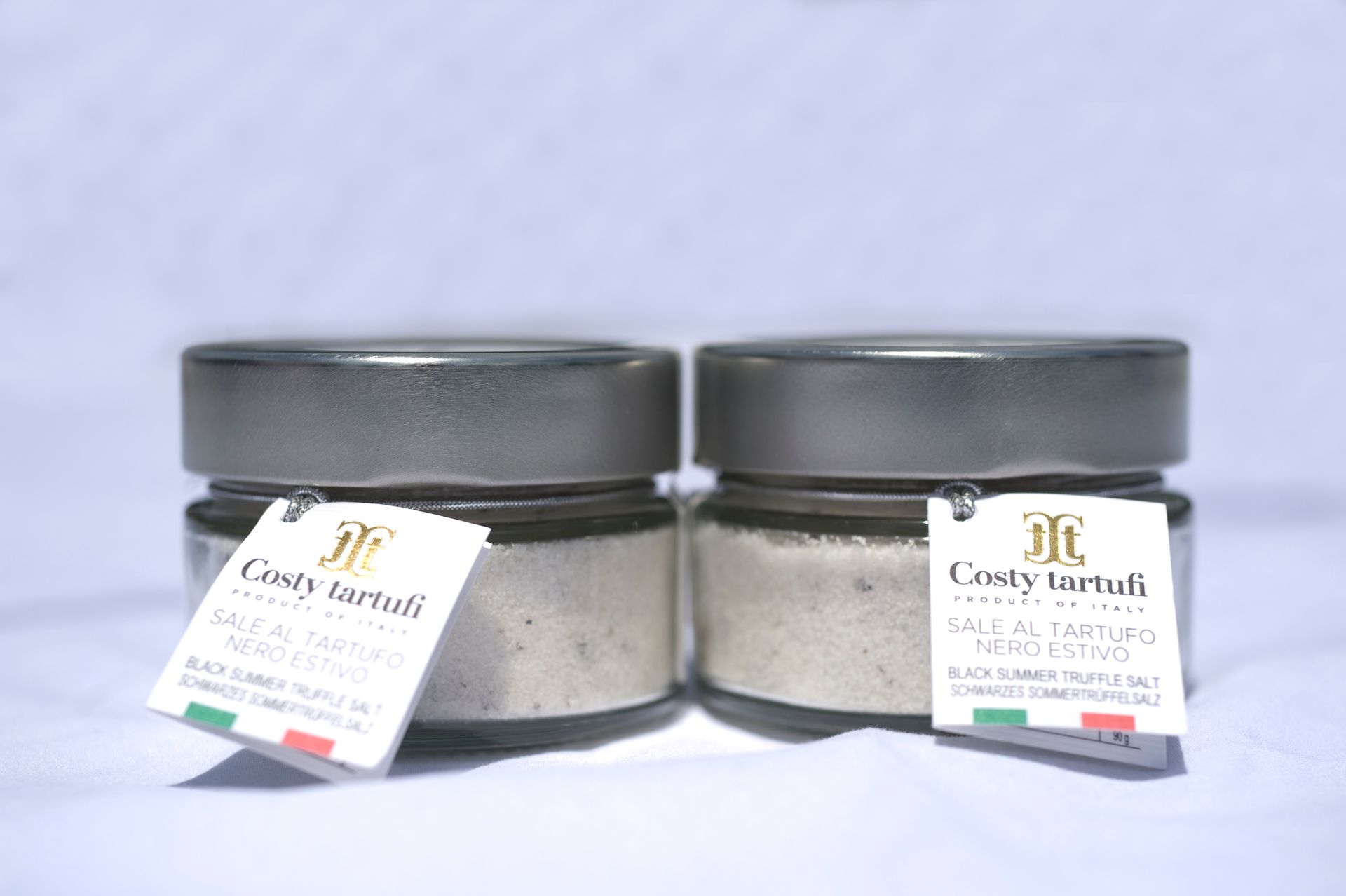 Il sale, ricco di diverse proprietà benefiche, viene proposto arricchito dal tartufo nero estivo in piccole scaglie (al 10%), e questo prezioso abbinamento è ideale