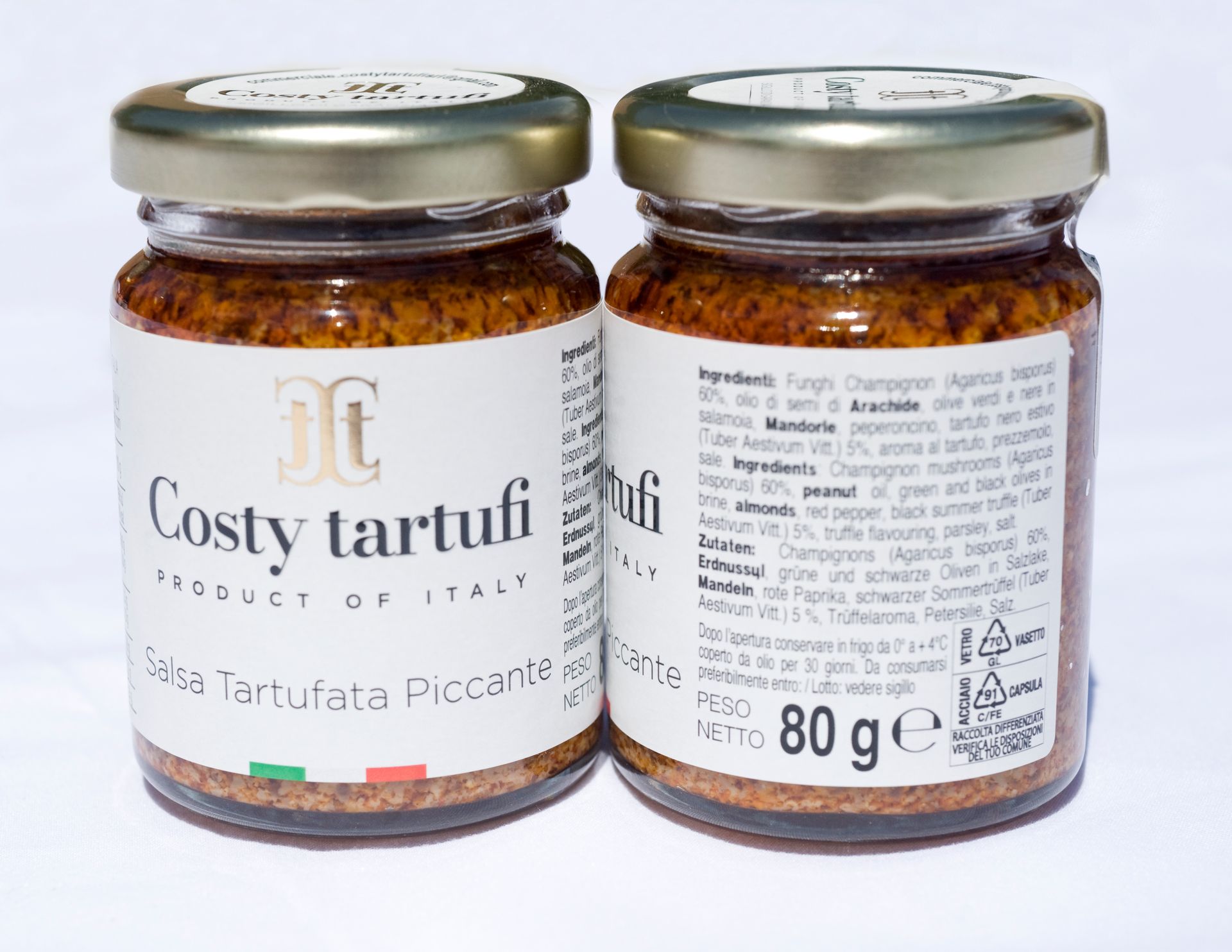 La tartufata piccante con tartufo estivo è un delizioso condimento per condire carni grigliate, pesce, crostacei, piatti freddi, carni bollite, insalate. Dopo l'apertura conservare in frigo da 0° a + 4° coperto da olio per 30 giorni.